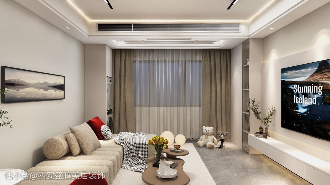 邊框線條:簡潔的乳膠漆做基礎(chǔ),根擾電視墻的比例造型,裝上邊框線條,保持簡約大方的基礎(chǔ),還能增加電視墻的層次美與對稱設(shè)計感,這也是一種簡約大方的設(shè)計方案。